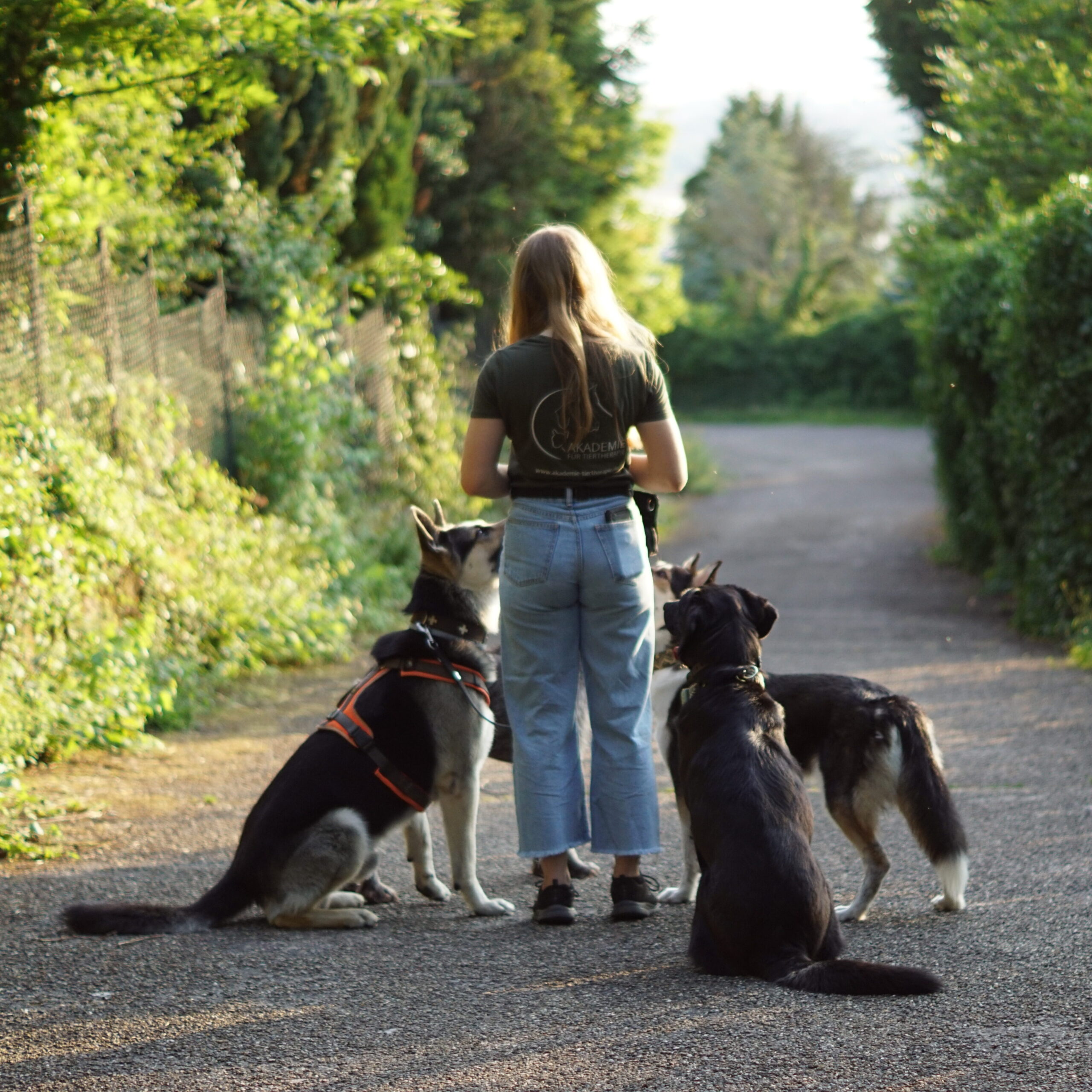 Ich passe den Spaziergang an die Bedürfnisse und Kompetenzen jedes Hundes in der Gruppe an. Welche Fähigkeiten bringt er mit? Wo benötigt er Unterstützung? Was kann er in die Gruppe einbringen?